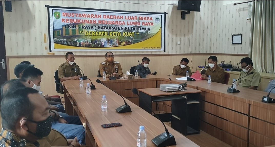 Sangatta – Agar roda organisasi tetap berjalan sesuai dengan fungsinya, pasca di tinggal pergi oleh ketuanya dengan alasan berpidah tugas ke Kota Banjarmasin. Sekira pukul 10 ; 00 Wita pagi tadi Wakil Bupati Kutim Kasmidi Bulang membuka secara resmi pelaksanaan Musyawarah Daerah Luar Biasa Kerukunan Keluarga Luwu Raya (KKL -Raya) Kabupaten Kutai Timur dengan teman “bersatu Kita kuat”, yang berlangsung di ruang rapat Dinas Perindustrian dan Perdagangan  (Disperindag) Kutim, Senin (23/8/2021).