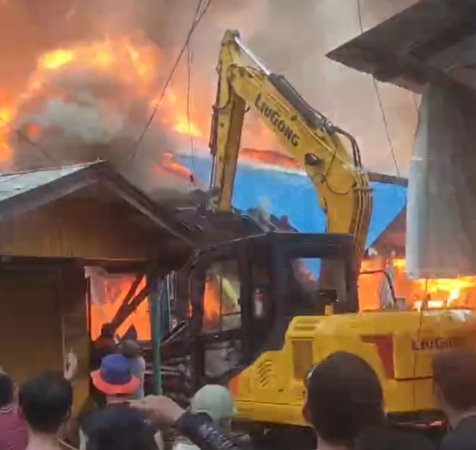 Kebakaran Hebat Melanda Desa Batu Timbau, Warga Padamkan Api Pakai Excapator