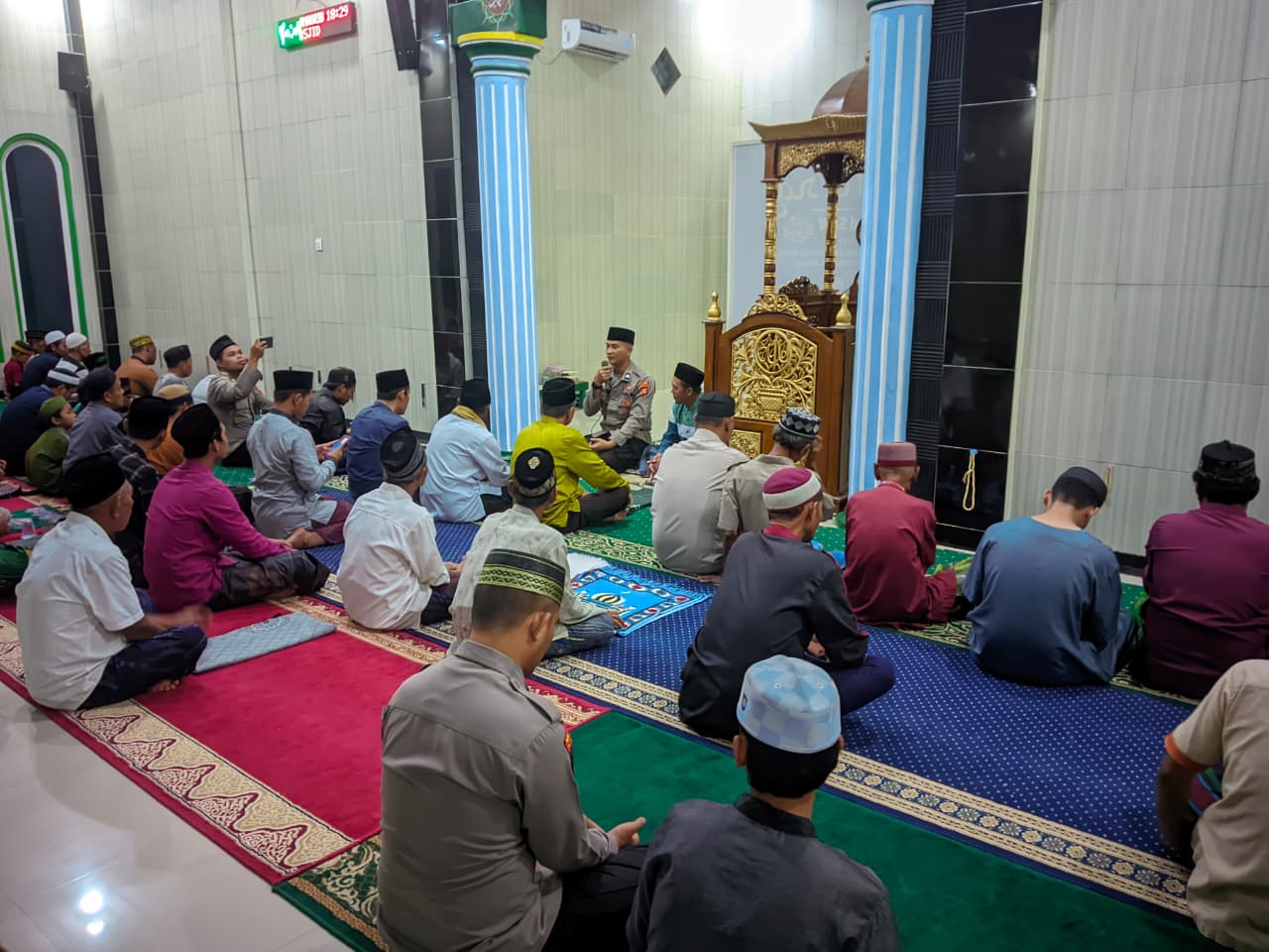 Kegiatan tersebut dilaksanakan pada Selasa (10/3/2026) malam di Masjid At Taqwa, Desa Sumber Sari, Kecamatan Long Mesangat, Kabupaten Kutai Timur. Selain melakukan pengamanan ibadah salat Tarawih, petugas juga menyampaikan kultum atau ceramah singkat kepada para jamaah.