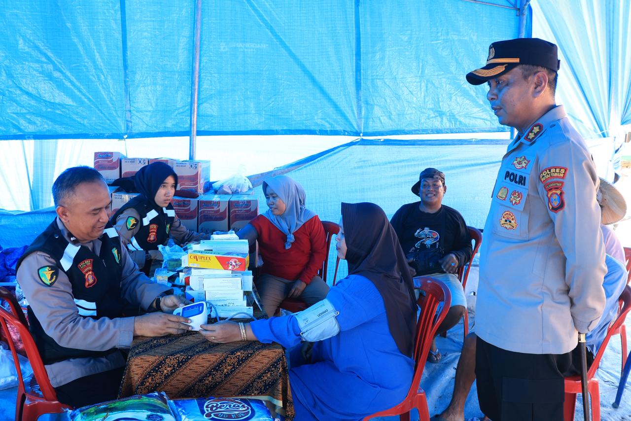 Kutai Timur – Pasca kebakaran yang menghanguskan 75 rumah warga, jajaran Polres Kutai Timur melalui Seksi Kedokteran dan Kesehatan (Sidokkes) menggelar bakti kesehatan dengan memberikan layanan pengobatan gratis kepada masyarakat di Desa Batu Timbau, Kecamatan Batu Ampar, Minggu (29/3/2026).